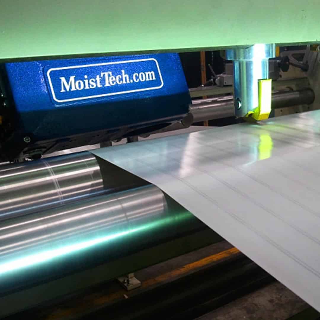 At MoistTech Corp., we utilize only the best technology for your manufacturing needs. Near-Infrared Technology (NIR) allows for a non-contact solution for accurate moisture content readings. This technology is insensitive to variations like particle size, material height, and color. These sensors only require a one-time calibration to enable personnel to make real-time line adjustments based on measurement readings. This technology, present in our sensors, is best suited for quality control to optimize the manufacturing process, saving your company both time and money. Our IR-3000 sensors can be used throughout the whole paper process —including the initial wet paper pulp stage — measuring a variety of moisture content; this includes water and solvent-based coatings, coat weight thickness and adhesives, and even detecting loss of coatings or spot defects continuously.