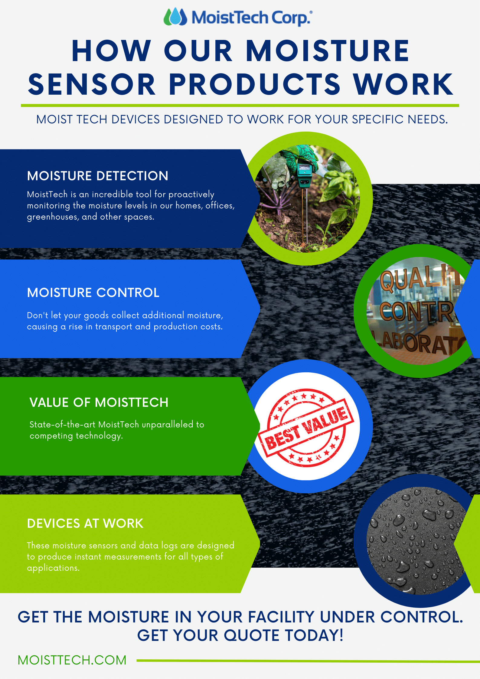 Our products are imperative to protecting your business and goods. Don’t let your hard-earned and acquired revenue source be a drain. Get the moisture in your facility under control with MoistTechs impressive line of state-of-the-art moisture detection and control technology.