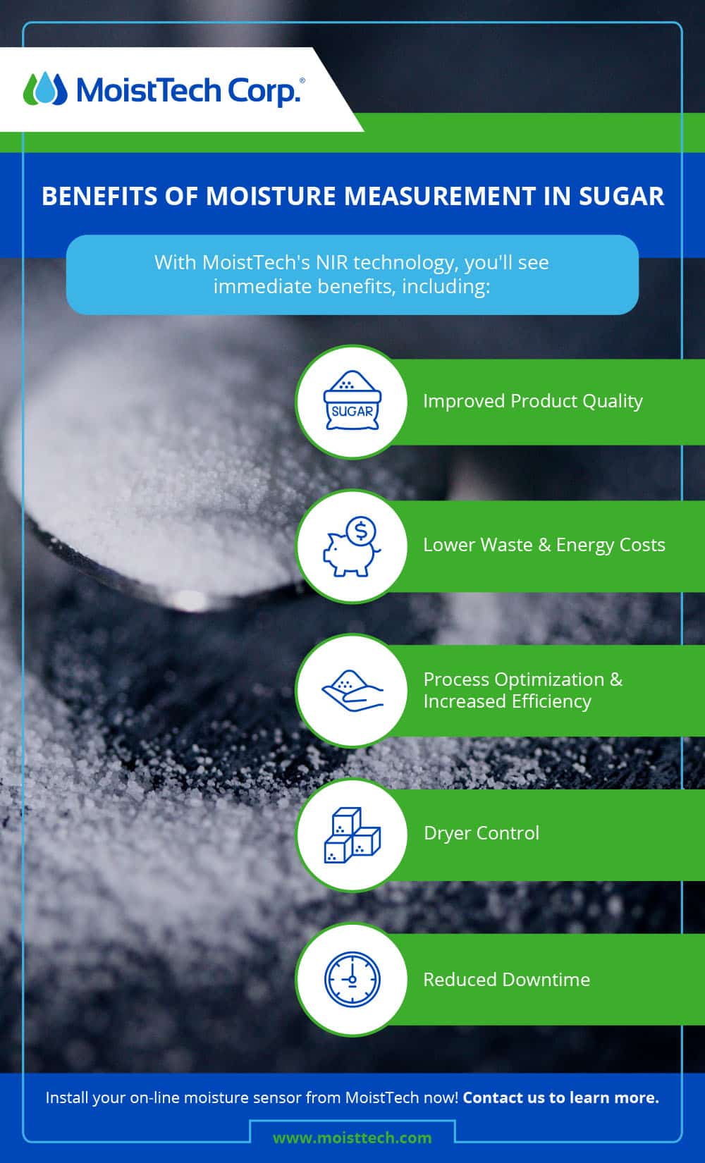 In order to produce sugar that is of the highest quality, it is important to have moisture measurement and control capabilities in place. Sugar that has too much moisture can cause clumping, while sugar that is too dry can lead to caking or burning. Having an accurate measure of moisture content throughout the sugar production process can help avoid these problems and ensure a consistent, high-quality product.